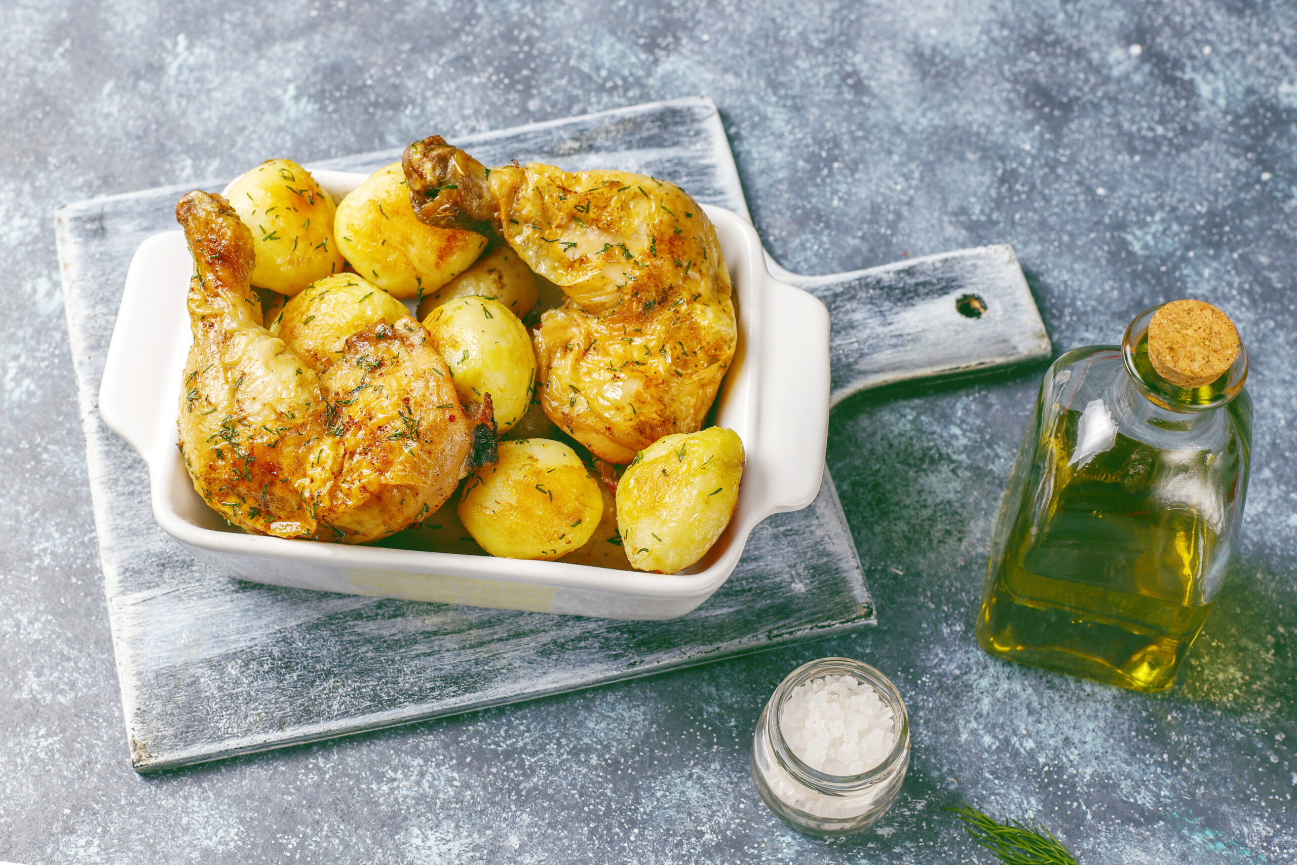 - Κοτόπουλο με πατάτες φούρνου και λαχανικά